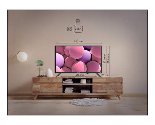 32', HD, Nosmart, Black, 1366x768, 60 Hz, , 2x8W, 33 kWh/1000h ,HDMI ports 2, 24 months