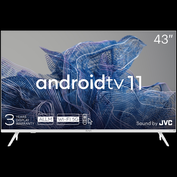 43', UHD, Android TV 11, White, 3840x2160, 60 Hz, Sound by JVC, 2x12W, 53 kWh/1000h , BT5.1, HDMI ports 4, 24 months