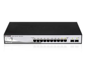 D-Link DGS-1210-08P, 8-port 10/100/1000 Gigabit PoE Smart Switch including 2 Combo 1000BaseT/SFP, Advance power saving features, tim e-based PoE, 802.3af & Pre-standard 802.3at, max PoE budget 78W, Fanless design, 802.3ad Link Aggregation, Asymmetric VLAN, Auto Voice VLAN, LLDP/LLDP-MED, 802.1p priority queues, MAC/IP filtering, MAC/IP-based ACL, 802.1X port-base Access Control, Port Secu rity, Smart Console Utility, web based management, compact CLI, Compact 13" desktop enclosure