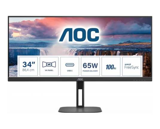 AOC U34V5C, 34", HDMI, DP, USB-C, HAS, 100Hz