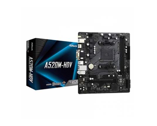 Asrock MB A520M-HDV, S. AM4, 2xDDR4/4733(OC), PCIe 3.0, G-LAN, VGA/DVI-D/HDMI, mATX