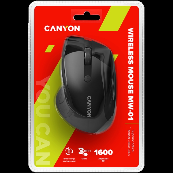 CANYON 2.4Ghz wireless mouse, optical tracking - blue LED, 6 buttons, DPI 1000/1200/1600, Black pearl glossy