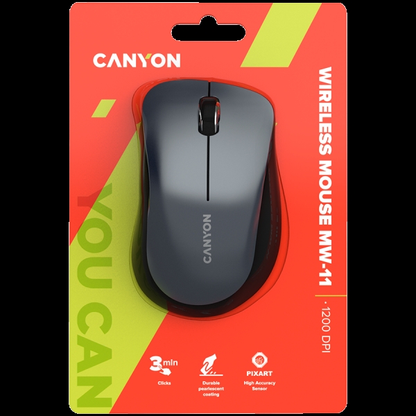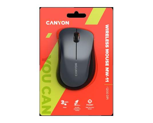 CANYON MW-11, 2.4 GHz Wireless mouse,with 3 buttons, DPI 1200, Battery:AAA*2pcs,Black,67*109*38mm,0.063kg