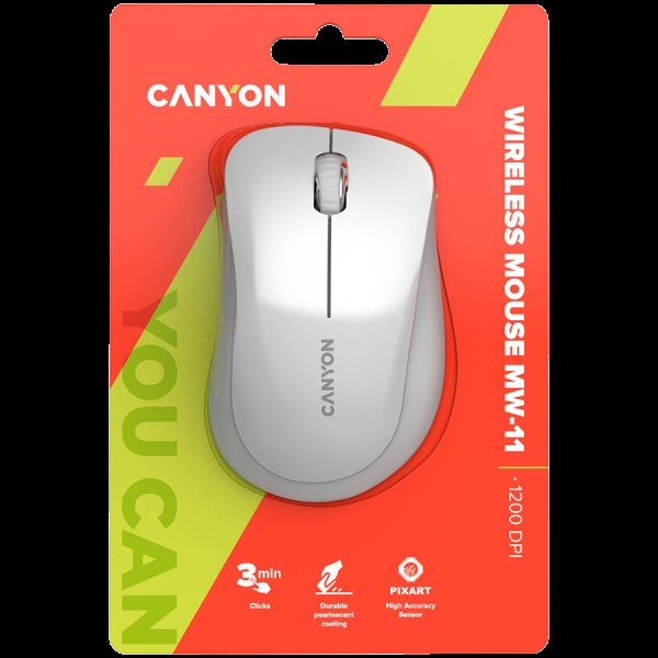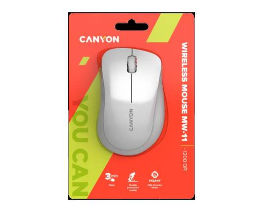 CANYON MW-11, 2.4 GHz Wireless mouse ,with 3 buttons, DPI 1200, Battery:AAA*2pcs ,pearl white grey67*109*38mm 0.063kg