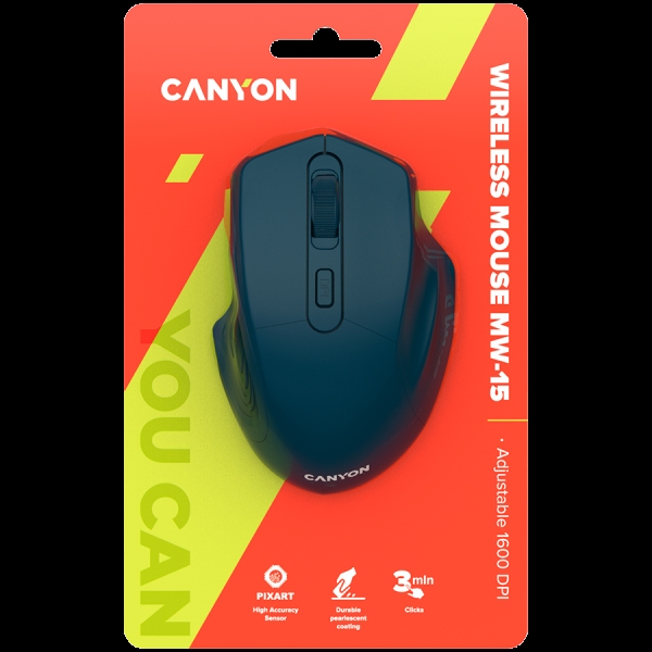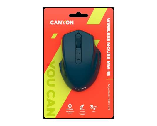 CANYON MW-15, 2.4GHz Wireless Optical Mouse with 4 buttons, DPI 800/1200/1600, Dark Blue, 115*77*38mm, 0.064kg