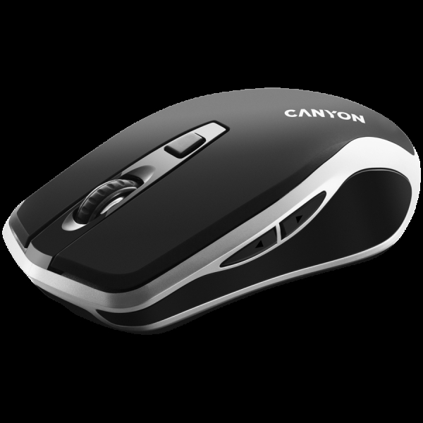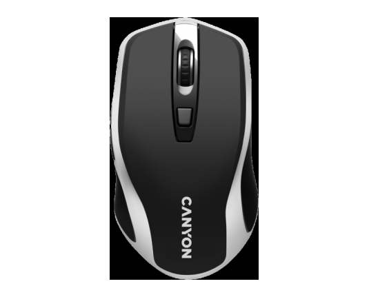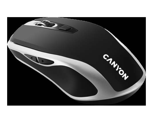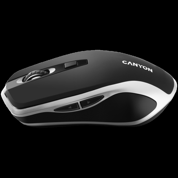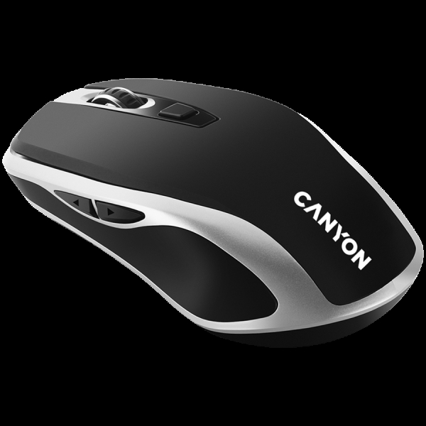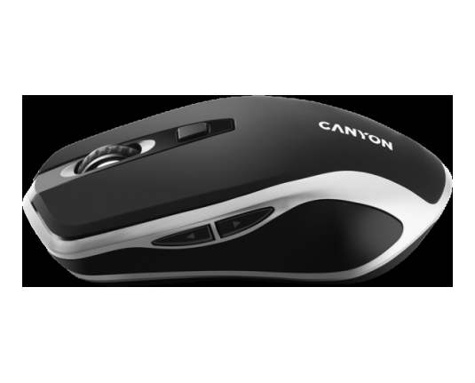 CANYON MW-19, 2.4GHz Wireless Rechargeable Mouse with Pixart sensor, 6keys, Silent switch for right/left keys,Add NTCDPI: 800/1200/1600, Max. usage 50 hours for one time full charged, 300mAh Li-poly battery, Black -Silver, cable length 0.6m, 121*70*39mm, 0.