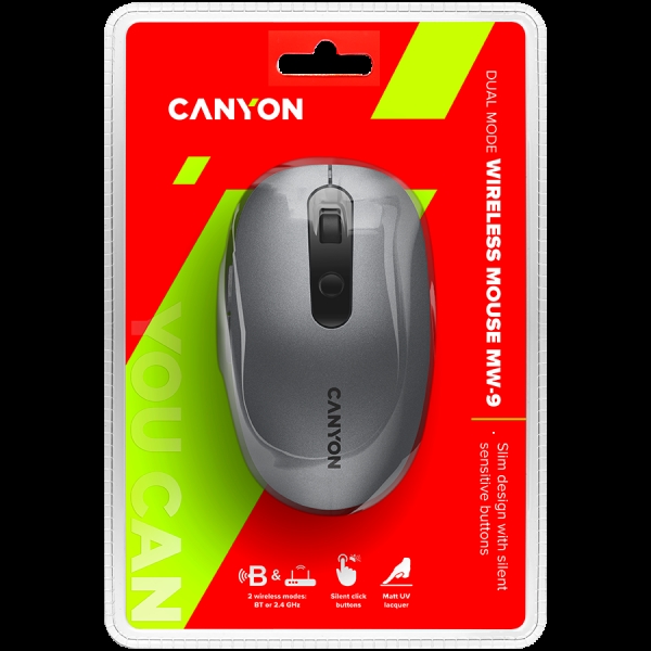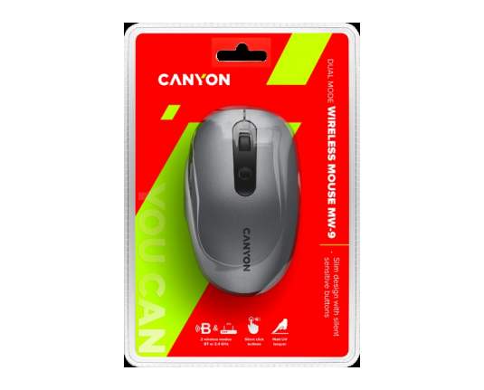 CANYON MW-9, 2 in 1 Wireless optical mouse with 6 buttons, DPI 800/1000/1200/1500, 2 mode