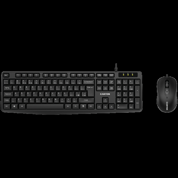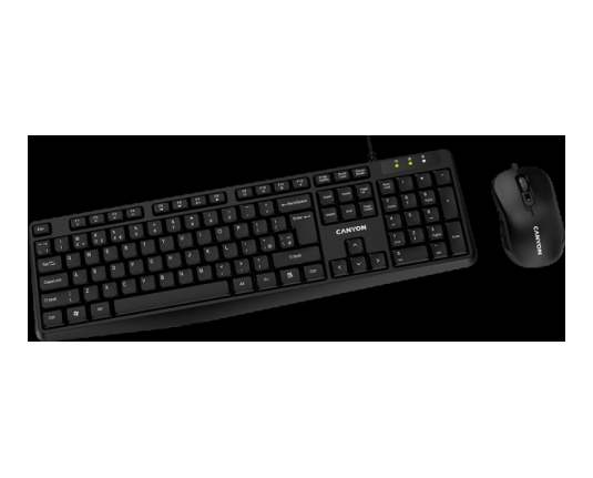 CANYON USB standard KB, water resistant AD layout bundle with optical 3D wired mice 1000DPI black