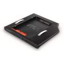 AXAGON RSS-CD09 interni okvir dizajniran je kako bi se ugradio umjesto postojećeg 9,5 mm CD/DVD pogona. Dizajniran je za 2.5" SSD/HDD SATA diskove. Možete jednostavno zamijeniti optički pogon vašeg laptopa s tvrdim diskom. Može se koristiti standardni 2,5” SSD disk visine 7 mm i tvrdi diskovi visine 9,5 mm. Adapter se s ugrađenim diskovima ponaša kao standardni tvrdi disk u operativnom sustavu i u BIOS-u (UEFI). Umetanjem diska u adapter možete jednostavno dodati interni 2.5" disk koji može biti dodatak postojećem disku laptopa. Podrška za podizanje sustava može značajno ubrzati starije laptope dodavanjem 2.5" SSD diska.