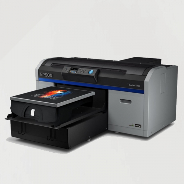 Epson SC-F2200 je DTG (Direct to Garment) pisač dizajniran za izravan ispis na svijetlim i tamnim tkaninama, posebno pamučnim. Koristi tehnologiju ispisa s pet boja: cijan, magenta, žuta, crna i bijela (dvostruka bijela tinta), što omogućuje izravan ispis otpornih i živopisnih boja.