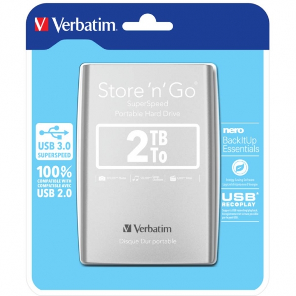 EXTERNI HARD DISK VERBATIM USB 3.0 2,5" 2TB SILVER #53189