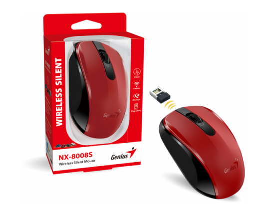Genius NX-8008S, bežični miš, silent, crvena/crna