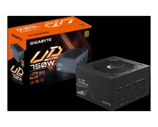 GIGABYTE UD750GM PG5 Power Supply 750W, PCIe Gen5 16Pin, Modular, 80 PLUS Gold, Japanese capacitors, 120mm smart control fan, EU plug