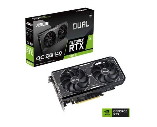 DUAL-RTX3060Ti-O8GD6X, NVIDIA GeForce, RTX3060Ti, PCIe 4.0 x16, 8192, GDDR6X, 256-bit, 3x Display port, 1x HDMI 2.0b, 7680x4320