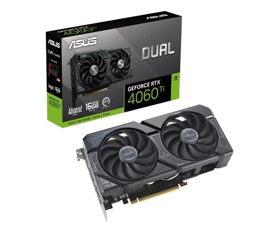 DUAL-RTX4060TI-A16G, NVIDIA GeForce, RTX4060Ti, PCIe 4.0 x16, 16384 ,GDDR6, 128-bit, 2.550 MHz, Takt memorije 18.000 MHz, 3x Display port, 1xHDMI 2.1a, 7680x4320