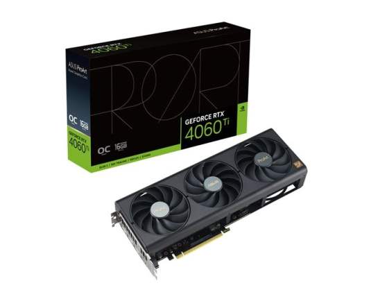 PROART-RTX4060TI-O16G, NVIDIA GeForce, RTX4060Ti, PCIe 4.0 x16, 16384, GDDR6, 128-bit, 2.655 MHz, Takt memorije 18.000 MHz, 3x Display port, 1x HDMI 2.1a, 7680x4320