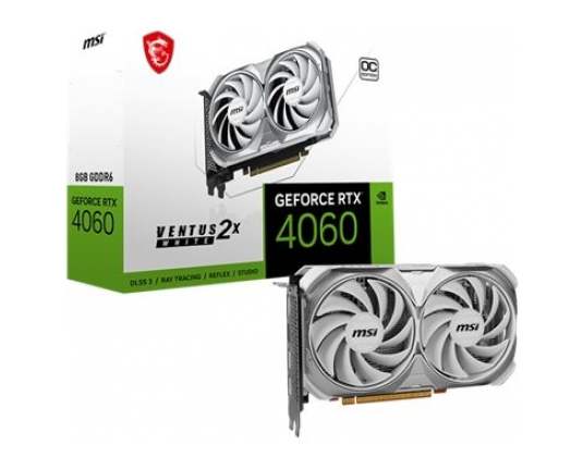 RTX 4060 VENTUS 2X WHITE 8G OC, NVIDIA GeForce, RTX4060, PCIe 4.0 x16, 8192, GDDR6, 128-bit, 2.490 MHz, Takt memorije 17.000 MHz, 3x Display port, 1x HDMI 2.0, 7680x4320