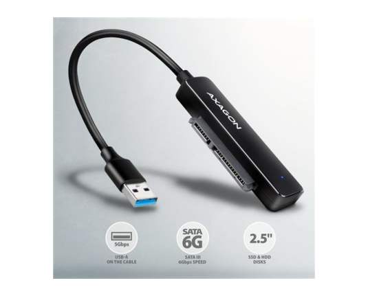 Kompaktni AXAGON ADSA-FP2A SLIM adapter s USB-A 5Gbps i SATA 6G sučeljem za 2,5" SATA tvrde diskove ili SSD-ove. Povezivanje s računalom omogućuje trajno priključen USB-A kabel duljine 20 cm. Zahvaljujući USB 3.2 Gen 1 sučelju , brzina prijenosa je do 5 Gb/s, a Plug & Play funkcija osigurava automatsko povezivanje s računalom.