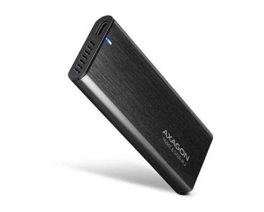 Vanjska aluminijska kutija AXAGON EEM2-SB2 RAW s USB 3.2 Gen 2 sučeljem dizajnirana je za NVME SATA M.2 SSD diskove. Dvostrani USB-C B konektor nakutiji zajedno s dostavljenim USB-C -> USB-A kablom omogućava pouzdanuvezu s računalom. SATA 6G sučelje vam omogućava uživanje u brzinamamodernih M.2 SSD-ova. Brzina prijenosa je jednaka 10Gb/s zahvaljujućibrzom USB 3.2 Gen 2 sučelju. Vanjska M.2 kutija također podržava ostalemoderne funkcije poput UASP, TRIM i dozvoljava čitanje S.M.A.R.T.informacija koje prate status diska. SATA M.2 SSD diskovi se mogukoristiti u vanjskoj kutiji. Prednost je jednostavno postavljanje četirirazličite veličine SSD kartica - 42, 60 i 80 mm. M.2 kartice mogu bitijednostrane ili dvostrane. Kutija ne umanjuje kapacitet umetnog SSD-a.Otvor kutije bez vijaka olakšava sastavljanje i rastavljanje M.2 SSDdiska. Promjena diska je brza i jednostavna što povećava mogućnostikorištenja kutije npr. za migriranje podataka, testiranje i sl. Vanjskometalno kućište je crne boje s elegantnim brušenim sjajem koja sprječavaneželjene otiske prstiju. Obli dizajn kutije obećava ugodno korištenje.Aluminijsko kućište pruža veoma dobro hlađenje umetnutom M.2 SSD disku.Umetanjem M.2 SSD-a u kutiju stvorit ćete brz i kompaktan vanjski disk.Kutija se može koristiti s računalima i prijenosnim računalima kao i smobitelima te tabletima.