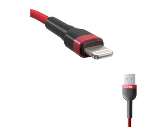 Tehnical Description: USB-A 2.0 -> LIGHTNING 2m crveni M-AL3205R Vrsta kabla USB Konektori Lightning M Konektori USB 2.0 Konektori USB AM Duljina [m] 2,0 m Boja crvena. Kabel podržava screen mirroring mobitela u automobilu.Marketing Description: MS CABLE USB-A 2.0->LIGHTNING, Materijal: najlonska pletenica + školjka od legure aluminija Duljina: 2,0 m Struja 2.4A, crveni. Kabel podržava screen mirroring mobitela u automobilu.