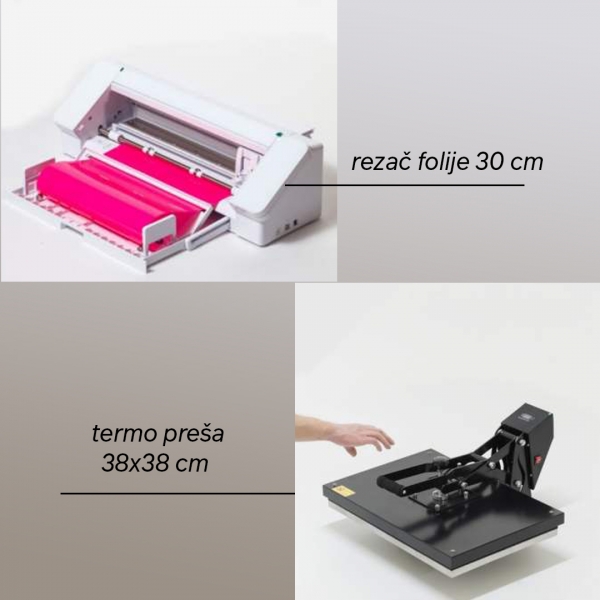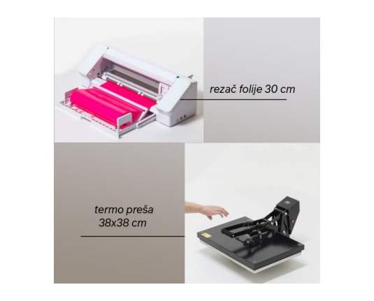 - crtač za rezanje, širine 30 cm, za rezbarenje termoljepljivog materijala za izradu željenih dizajna i natpisa; PC i MAC program uključen u paket