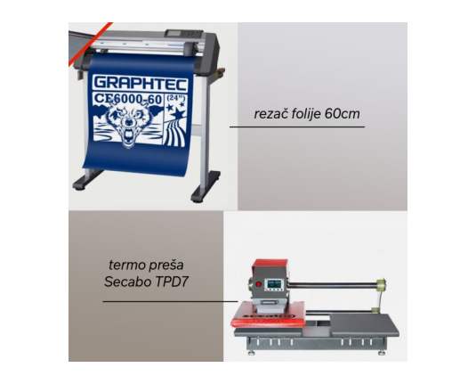 - Graphtec CE 7000-60 ploter, širine 60 cm, za izrezivanje termo-ljepljivog materijala i kreiranje željenih crteža i natpisa. Softver za PC i Mac uključen u paket.