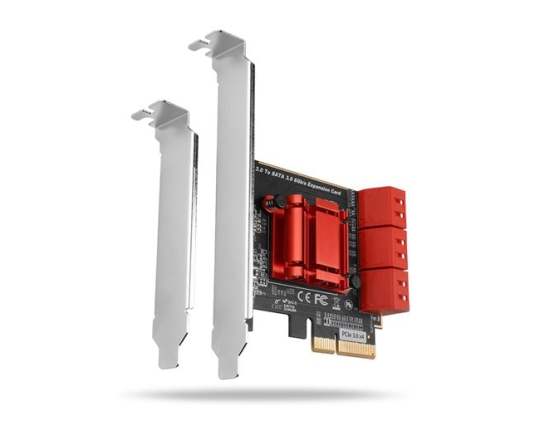 AXAGON PCES-SA6 PCI-Express konotroler proširuje vaš PC sa šest SATA III porta visoke brzine s brzinama prijenosa do 6Gb/s. Kartica je opremljena s ASMedia chipsetom koji podržava ne samo SATA 3.0 specifikaciju već i druge SATA tehnologije poput Hot-Plug, Native Command Queue (NCQ), TRIM ili Port Multiplier. Jednostavna instalacija bez potrebe za instalacijom drivera na većini operativnih sustava. Uključuje niskoprofilni nosač što omogućuje instalaciju kontrolera u standardna i niskoprofilna PC kućišta.