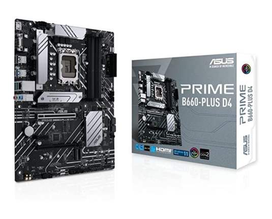PRIME B660-PLUS D4, LGA 1700, Intel B660, DDR4, Broj utora 4, 128 GB, Takt 2133 - 5066 MHz, PCIe 4.0 x16 1, PCIe x4 1, PCIe x1 2, SATA3 4, 8-kanalni audio, D-sub 1, DP 1, HDMI 1, RJ45 1, M.2 3, USB 3.2 4