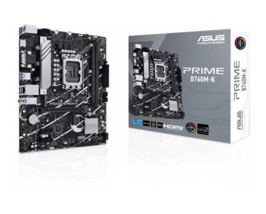 PRIME B760M-K, LGA1700, B760, DDR5, Broj utora 2, 4800 - 8000MHz, PCIe 4.0 x16 1, SATA3 4, RAID 0, RAID 1, RAID 5, 8-kanalni audio, 1x 2.5Gb Ethernet, mATX, USB 3.2 4