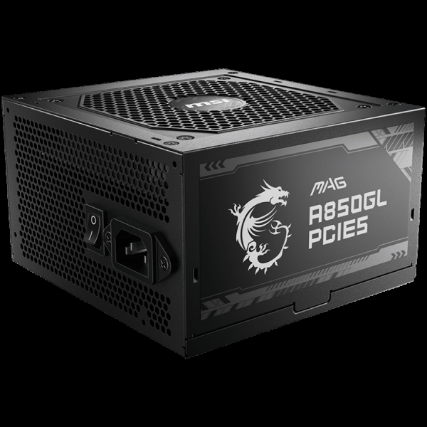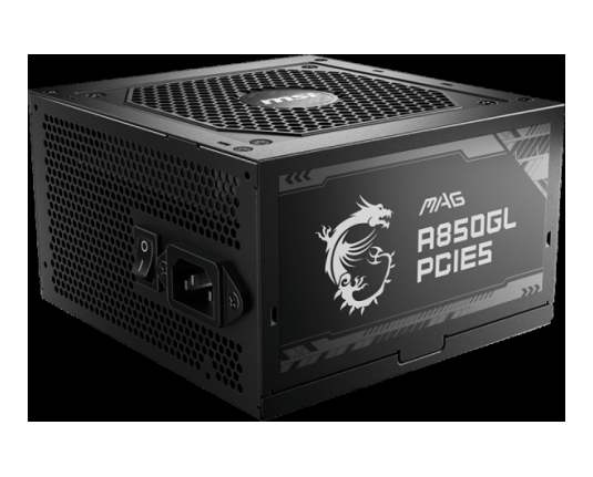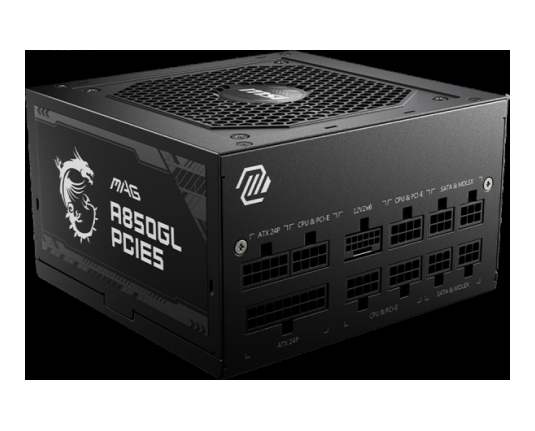 MSI MAG A850GL PCIE5, 850W, 80 Plus Gold, 120mm Fluid Dynamic Bearing Fan, Protections: OCP/OVP/OPP/OTP/SCP, Dimensions: 150mmx140mmx86mm, 7Y Warranty
