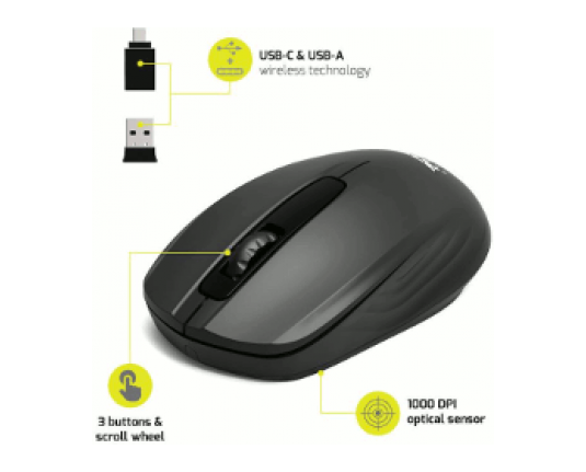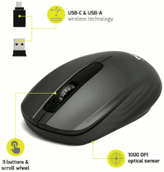 | Model | Port miš BUDGET bežični, USB-C i USB-A, crni |