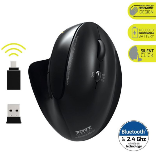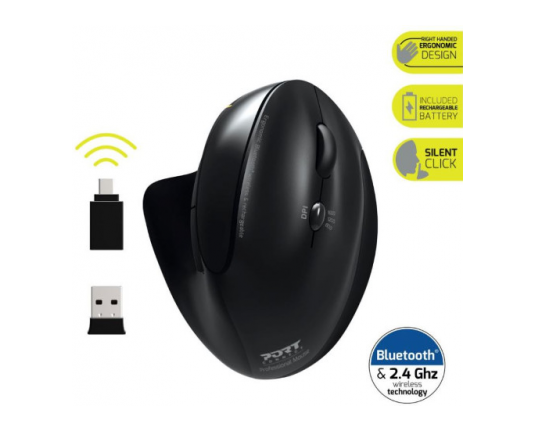 Port miš ergonomski WL/BT, punjivi, vertikalni