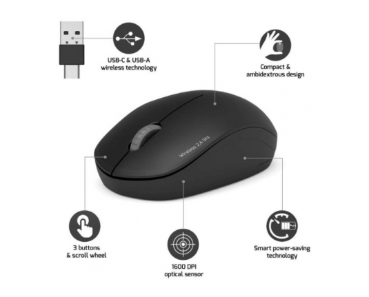 Port miš OFFICE bežični USB-A/USB-C, crni