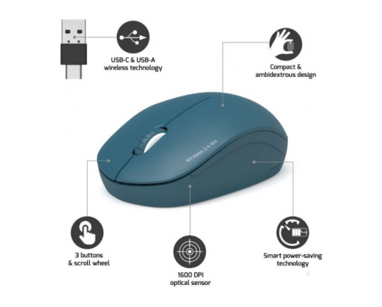 | Model | Port miš 2.4GHz OFFICE WL USB-A/USB-C, bežični, plavi |