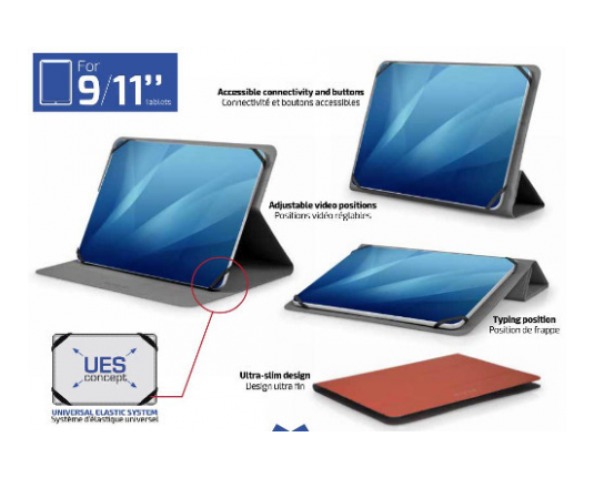 | Posebnosti | NOUMEA II univerzalna futrola za tablet 9–11’’ • Universal Elastic System (UES) za savršenu kompatibilnost • Zaštitni poklopac za zaslon • Podesivi položaji za gledanje videa • Položaj za tipkanje • Izuzetno tanak dizajn, dostupan u više boja • Jednostavan pristup priključcima i tipkama |