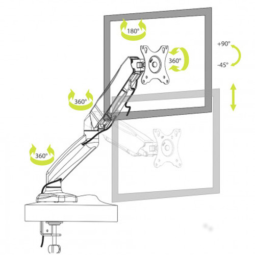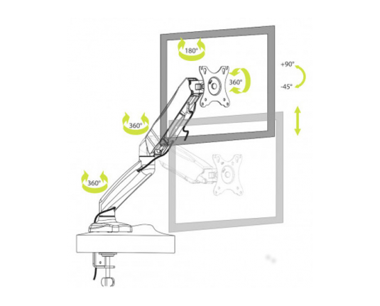 | Kratki opis | Ovaj proizvod je zaslon za jedan monitor do 32" i do 8 kg Materijal: aluminij Ruka je potpuno zglobna za optimalno pozicioniranje s ugrađenom podesivom hudraulikom Njegov ergonomski dizajn pomaže u smanjenju mišićno-koštanih problema Prolaz kablova unutar ruke oslobađa prostor na radnom stolu Mogućnost orijentacije zaslona, portretno ili pejzažno Instalacija je brza zahvaljujući VESA nosaču koji se može jednostavno skinuti (100x100mm i 75x75mm) Dvije metode ugradnje na radnu površinu: stezaljka ili montaža direktno na bazu. |