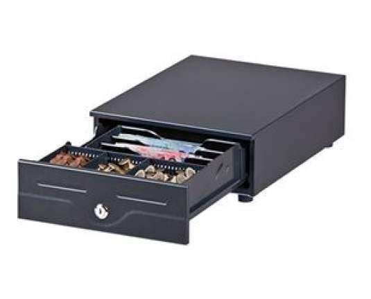 Tehnical Description: Ladica za novac prednji otvor dimenzije (ŠxVxD): 245x105x320mm 3 odjeljka za novčanice 3 pretinca za kovanice brava izravna veza s pisačem RJ11 boja: crnaMarketing Description: Ladica za novac, prednji otvor, dimenzije (ŠxVxD): 245x105x320mm, 3 odjeljka za novčanice, 3 pretinca za kovanice, brava, izravna veza s pisačem, RJ11, boja: crna