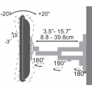 Detaljan opis Veličina ekrana 23“ - 55“ / 58 - 140 cm Nosivost do 30 kg VESA od 75x75 do 400x400 Udaljenost od zida 8,8 - 39,8 cm Okomiti nagib ±20° Okretanje ±90° Vodilice za kabele Da Dimenzije 43,5 x 43,5 x 39,8 cm