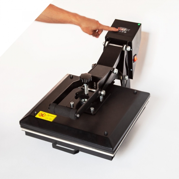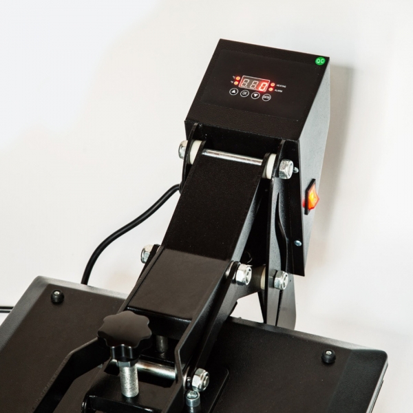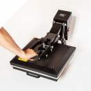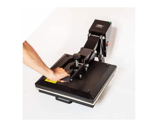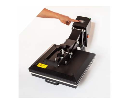- Transmax termo preša 38x38 cm s automatskim otvaranjem: Visoka kvaliteta, s posebnim mehanizmom za zatvaranje koji omogućuje profesionalni tisak pod visokim pritiskom uz minimalan napor. Također opremljena uređajem za automatsko otvaranje ploče na kraju obrade.
