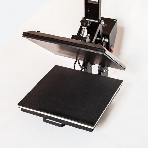 - Termo preša 38x38 cm s automatskim otvaranjem: Ista veličina ploče, omogućuje visokotlačne otiske (uključujući self-weeding prijenose za tamne tkanine). Opremljena uređajem za automatsko otvaranje ploče na kraju obrade i kliznom donjom pločom.