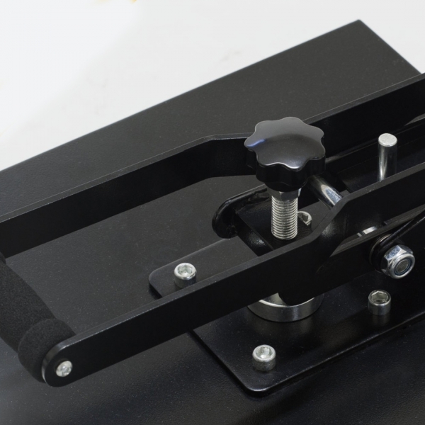 - Jeftina termo preša 40x60 cm s manualnim otvaranjem: Slična standardnom modelu 38x38 cm, ali s većom grijaćom pločom. Pogodna za tisak velikih termo-ljepljivih materijala.
