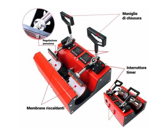 Termo preša za šalice s ručnim otvaranjem, s dvostrukom pločom za ispis 2 šalice u isto vrijeme.