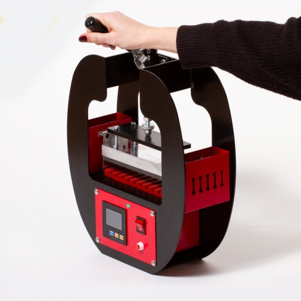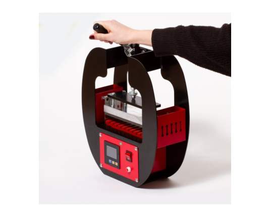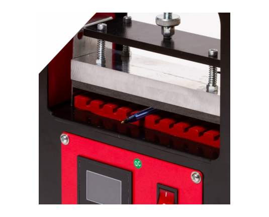 Termo preša za olovke s manualnim otvaranjem Profesionalna i ekonomična termo preša, idealna za sublimacijski tisak na 10 olovaka promjera 10 mm. Visina tiska iznosi 40 mm. Opremljena manualnim timerom i digitalnim postavljanjem temperature. Maksimalna snaga 550 W, maksimalna temperatura 230°C.