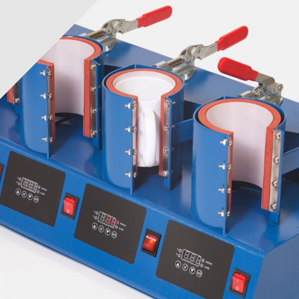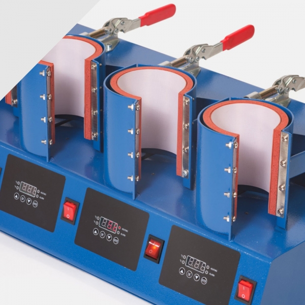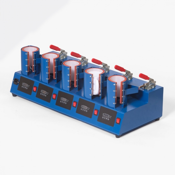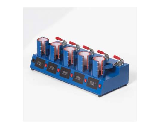 Termo preša za šalice s manualnim otvaranjem, s pet ploča za istovremeni tisak na 5 šalica