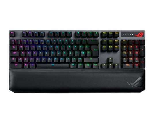 ROG Strix Scope NX RGB Wireless Deluxe gaming mehanička tipkovnica s tri načina povezivosti, ROG NX crvenim mehaničkim prekidačima, PBT tipkama, aluminijskim okvirom, magnetskim osloncem za zapešća i produženom Ctrl tipkom za preciznost u FPS igrama.